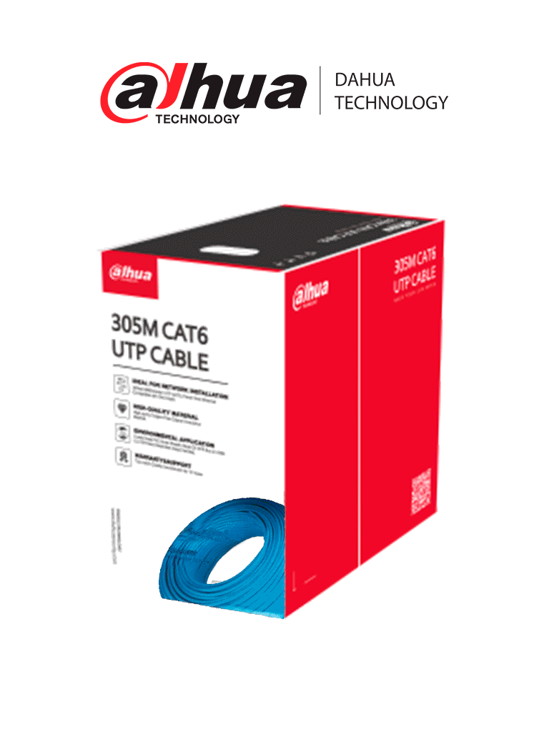 Diseñado para la construcción de redes a gran escala, la bobina de cable UTP Cat 6 de Dahua ofrece velocidades de red de hasta 1 Gbps, junto con conductores de cobre sin oxígeno al 99.7%, aislamiento de HDPE y funda de PVC para un mejor rendimiento de la red. Además, este cable admite la transmisión de PoE.